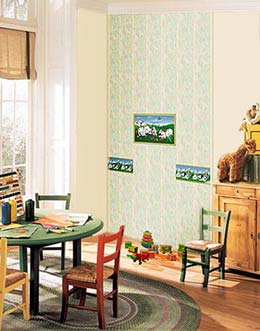 К примеру, оформить спортивную зону можно с помощью бордюров и декоров из коллекции «101 далматинец» (на фото внизу), а в игровую зону поставить панно из этой же коллекции. Ваш малыш будет рад увидеть героев из любимого всеми мультфильма. Вы даже можете предложить пофантазировать и дополнить панно, бордюр и декор собственными рисунками. Не волнуйтесь, арт-панели легко моются, а маркеры на водной основе смываются с панелей теплой водой.